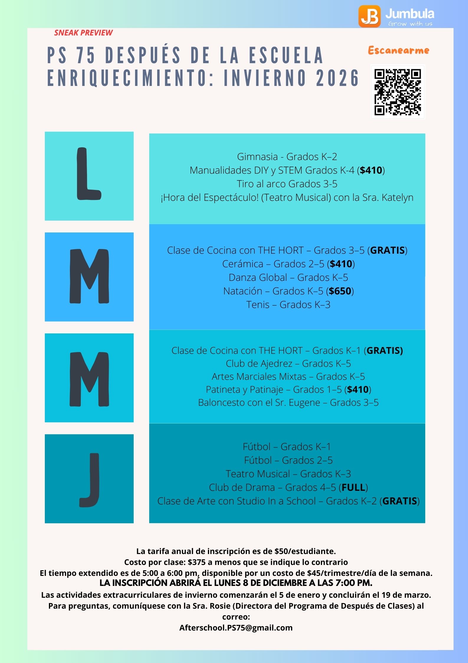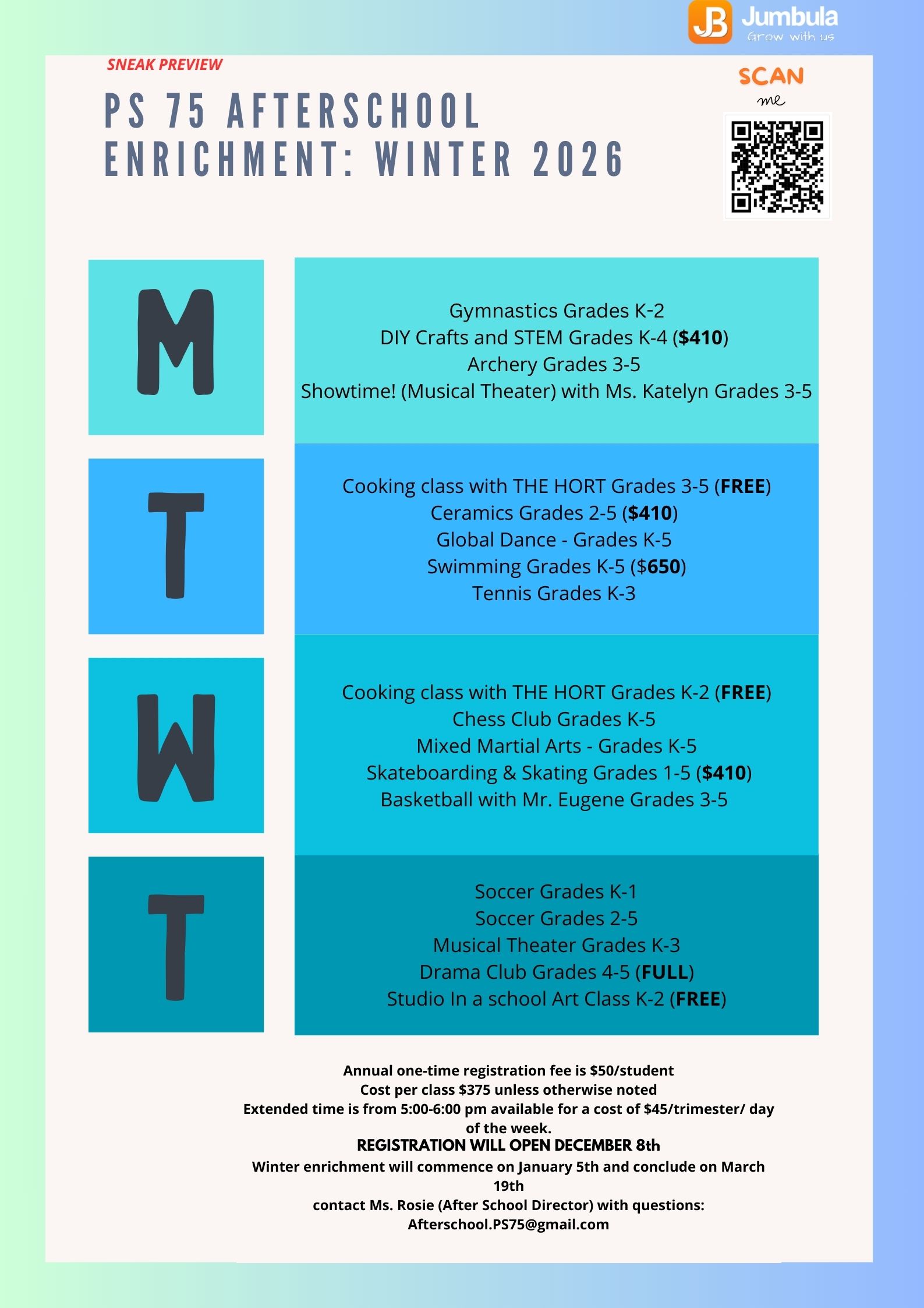 Jan 05, 2026 - Mar 16, 2026 Monday | $45.00 Extended time | Class details |